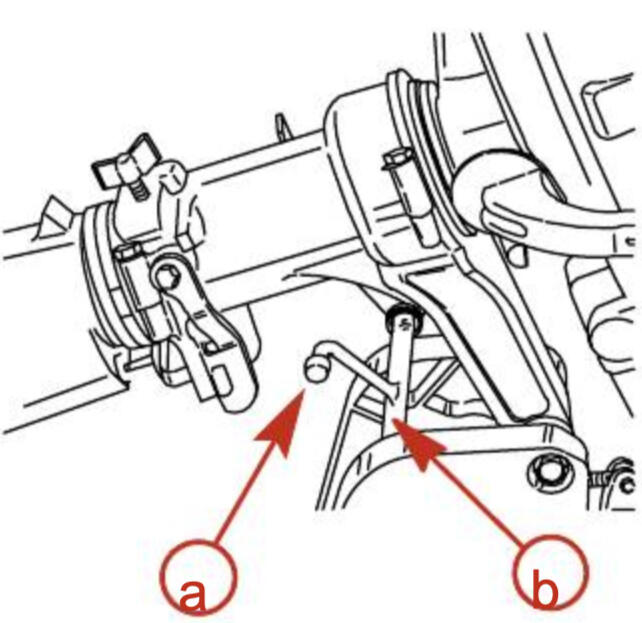 5. Attach the kill cord to the engine stop switch (a). Ensure the lanyard (b) is looped around your leg and clipped back on to itself